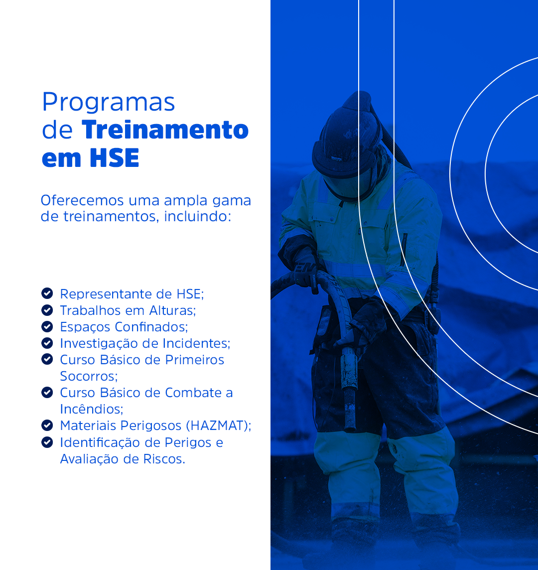 Soluções completas em HSE: criação de sistemas de gestão, suporte à certificação ISO, higiene ocupacional e treinamentos especializados.
