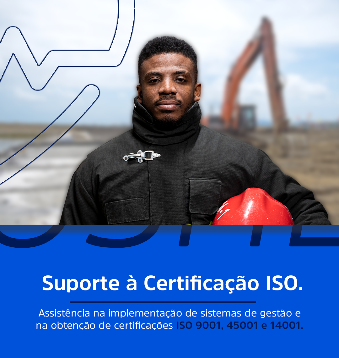 Assistência na implementação de sistemas de gestão e na obtenção de certificações ISO 9001, 45001 e 14001.
